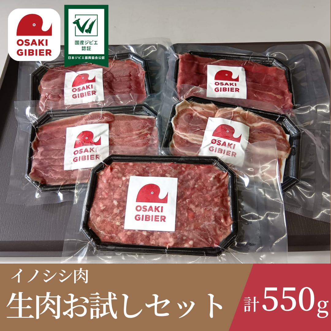 イノシシ肉 【生肉お試しセット】ロース・バラ・肩ロース・モモ(各1mmスライス)/挽肉