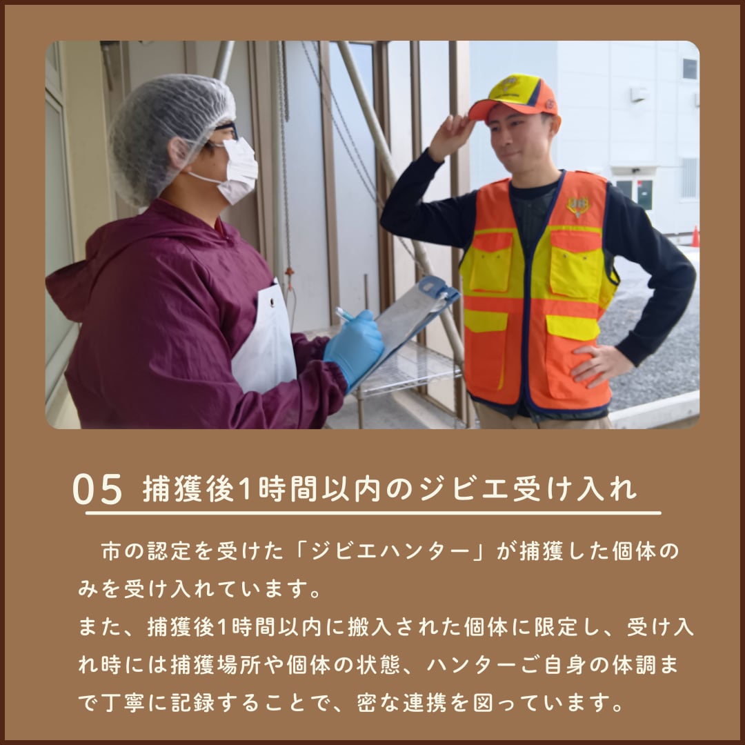 丁寧な「止め刺し」と、捕獲後すぐの搬入・解体による徹底した鮮度管理により、雑味を抑え、イノシシ肉本来の旨味を引き出しています。